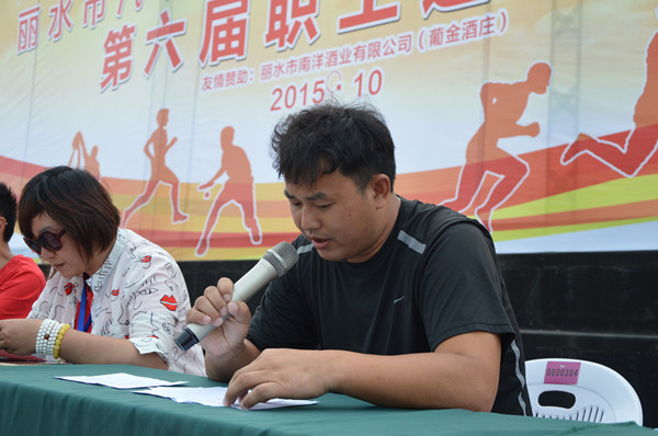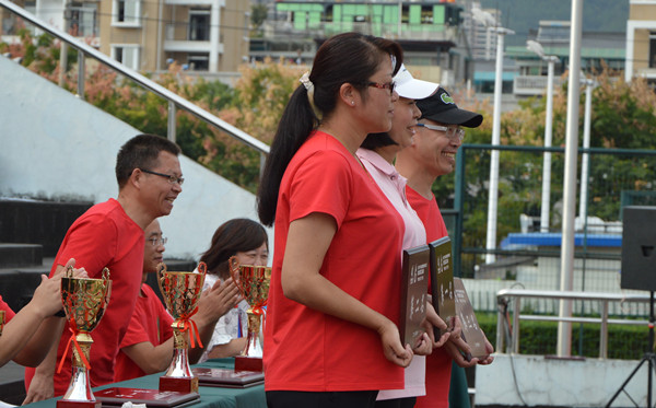 下午15:50,閉幕式開始。本屆運動會裁判長、麗水職業技術學院人文藝體分院梁勇建老師首先宣布了團體項目比賽成績和各獎項的獲得單位,(個人項目的獎項在各項比賽完畢后已經陸續發放完畢。)并舉行了頒獎儀式。
