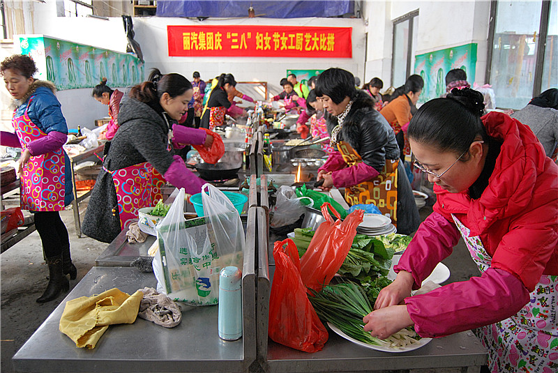 參加廚藝大比拼的7支隊伍,42位選手,分別來自集團公司各單位,有單獨組隊的,也有聯合組隊的。和去年三八節女工烹飪比賽相比,今年的難度增加了不少,根據比賽規則,每組選手必須在兩個小時內完成4個冷盤、8個熱菜、1個湯、1個點心的制作。
