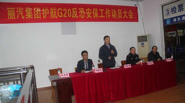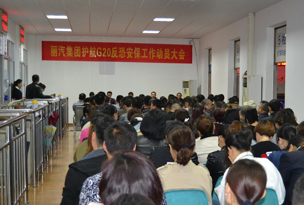 為切實(shí)加強(qiáng)集團(tuán)公司反恐安保防范的各項(xiàng)工作,4月14日晚,麗汽集團(tuán)護(hù)航G20反恐安保工作動員會在客運(yùn)東站候車室召開。集團(tuán)公司總經(jīng)理薛和有、反恐支隊(duì)長葉亞平、集團(tuán)公司安全保衛(wèi)稽查部經(jīng)理葉少華出席會議,東站全體人員、各運(yùn)輸單位領(lǐng)導(dǎo)班子及安全人員共200余人參加大會。會議由集團(tuán)公司總經(jīng)理助理葉劍飛主持。