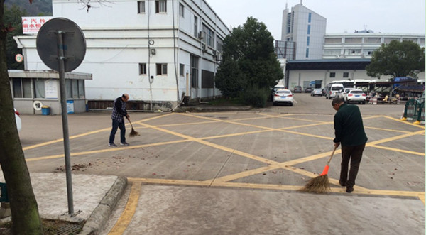 今天是2016年的最后一個星期一。一如既往,同事們早早的到學校,開始每周一習慣性的第一件工作--清掃學校的場地。