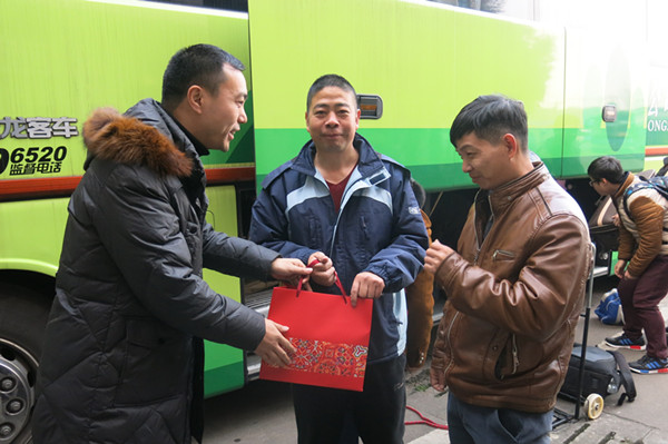 旅游集散中心領導走到每一位參與春運加班和民工返鄉包車的駕駛員身邊,送上慰問品,并叮囑駕駛員路途注意安全,在駕車時必須控制好車速,特別是在駛經彎道、坡路、橋梁、窄路和視線不良、交通流量大的路段或遇到下雨、下雪、大霧等惡劣天氣時,更要按照限速規定嚴格控制車速,避免發生交通事故;并做好保暖工作,搭班駕駛員互相照應,不能疲勞駕駛,注意自身健康。