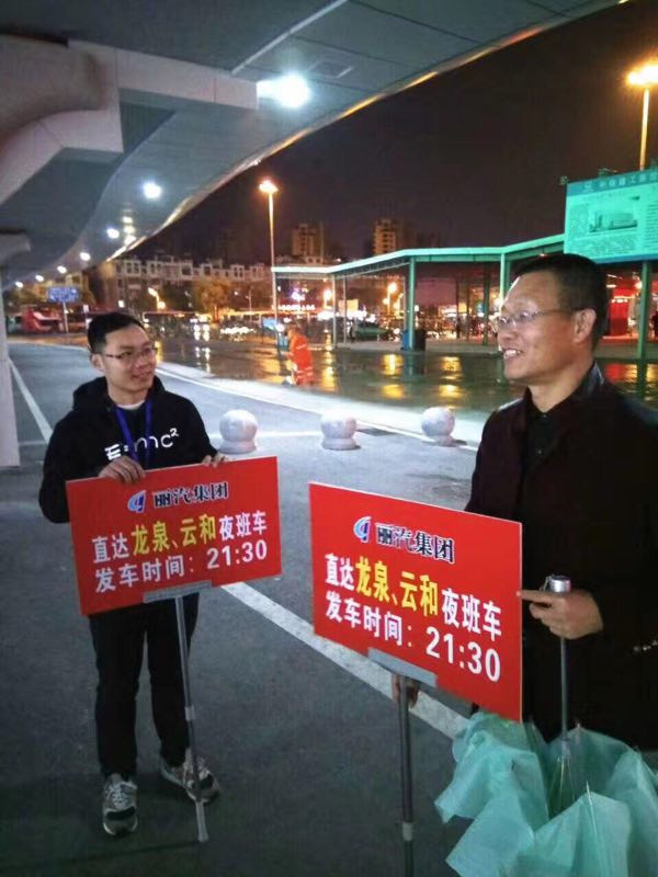 從前天(15日)開始,麗水至云和、龍泉班線夜班車調整至21:30發車。為了讓更多旅客知道班車時刻及更好的引導旅客上車,從當天起長途運輸分公司組織干部員工在高鐵站出站口對出站的旅客進行引導,讓更多云和及龍泉的旅客坐上了放心車。