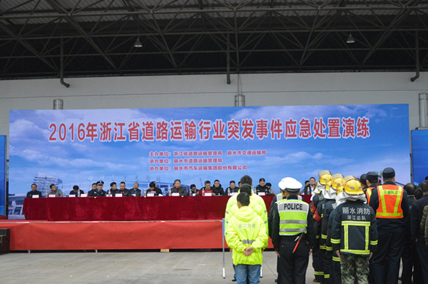 11月24日,由浙江省道路運輸管理局、麗水市交通運輸局主辦,麗水市道路運輸管理局承辦,麗水市汽車運輸集團股份有限公司協辦的2016年浙江省道路運輸行業突發事件應急處置演練在麗水客運西站舉行。