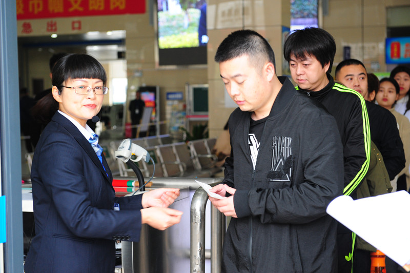 “各位旅客,從上饒到重慶的班車(chē)開(kāi)始檢票,請(qǐng)帶好您的行李物品排隊(duì)檢票”;“您好,我扶您到前面優(yōu)先檢票”……選手熱情的服務(wù),規(guī)范的操作,讓觀(guān)眾暫時(shí)忘卻了這是在行車(chē)比賽現(xiàn)場(chǎng)。