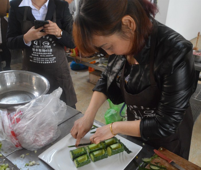 工作中的雪珍姐是認真的,工作之余的生活她也是認真的,他喜歡跳舞唱歌,也會主動參與社會活動。在接到今年三八公司舉辦廚藝比賽活動時,雪珍姐便踴躍報名帶隊參加,現場她用黃瓜雕刻的裝飾贏得了陣陣掌聲,她親手烹飪的“泡瘦肉”更是被一搶而空。比起我,雪珍姐的生活更加非富多彩、陽光向上,因此我總是叫她--全能的雪珍姐。