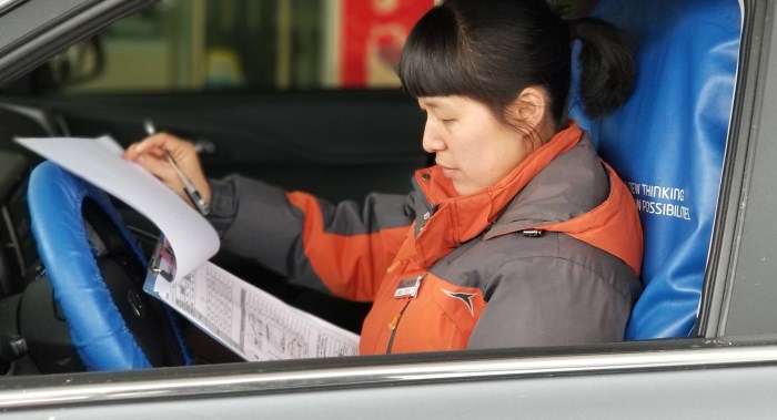 葉柳笑負責事故車接待。今年春節后,由于道路車流量大,事故車數量驟然變多,葉柳笑忙碌的身影在車間和接待處兩頭跑,連續的繁重工作她累病了。但她還是堅守在崗位上,直到售后經理強制要求她回家休息,她也僅休息了一天。她說,大家都這么忙,我在家里真的是坐立不安啊。
