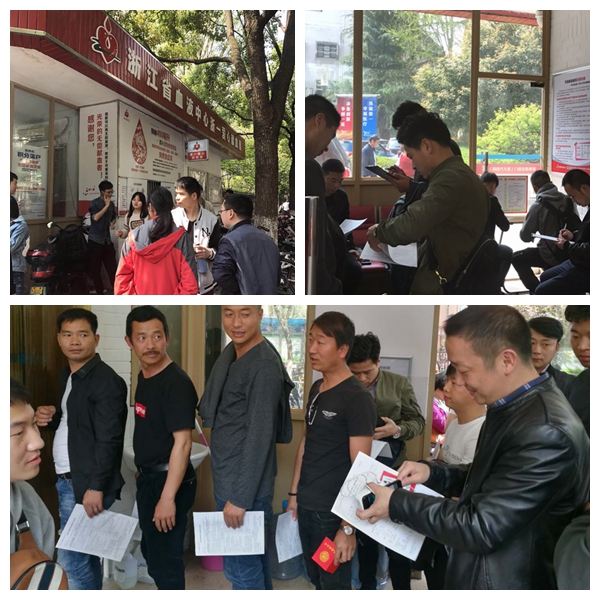 23位志愿者,有集團公司的高層領(lǐng)導(dǎo)、有二級單位的中層干部,也有普普通通的一線員工。有江小華所在單位的同事,也有其他兄弟單位的員工。大家顧不上3個多小時的舟車勞頓,車子一到杭州,就前往浙一醫(yī)院獻(xiàn)血點獻(xiàn)血。獻(xiàn)血屋前,麗汽集團的志愿者們排起了長隊,等待獻(xiàn)血前的身體檢查。引來了路人的紛紛關(guān)注。