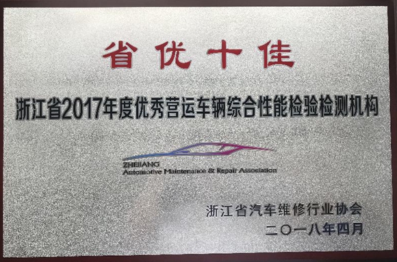 暨浙江省2017年度優(yōu)秀營(yíng)運(yùn)車(chē)輛綜合性能檢驗(yàn)檢測(cè)機(jī)構(gòu)