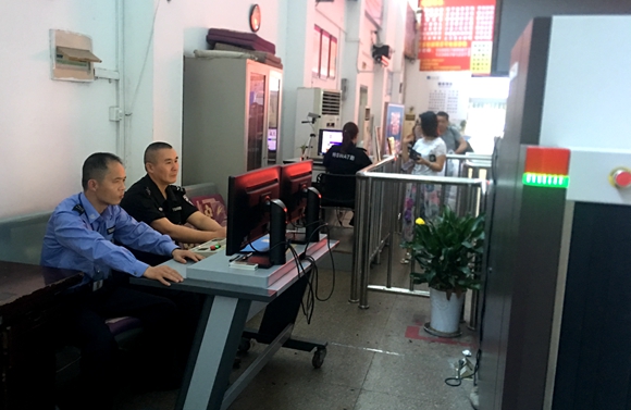 進(jìn)站安檢崗位上,保衛(wèi)稽查科員們認(rèn)真甄別禁止攜帶進(jìn)站的危險品和違禁品,為廣大乘客的生命財產(chǎn)安全筑起安全防線。