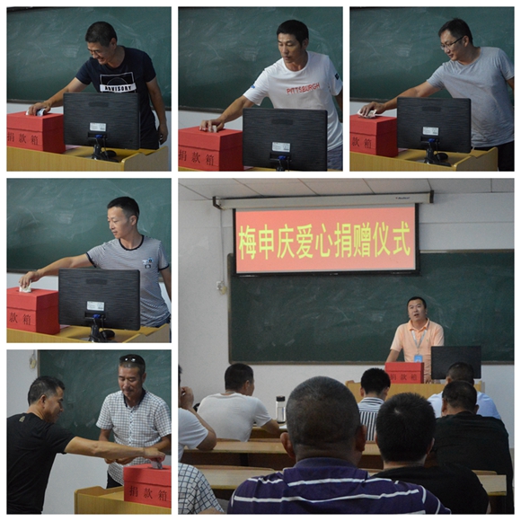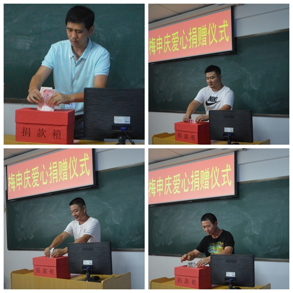 6月29日下午3時,愛心捐款儀式在汽校教室舉行。校領導帶頭捐款,汽校教練員工也積極參加,大家都踴躍地為梅申慶向上了自己的一份愛心,還有兩位學員還專門托教練捎來了捐款。短短幾分鐘內,就為梅申慶募捐到愛心款 3055元。汽校的金健飛校長更是在第一時間將這份汽校家人的關愛送到了在醫院接受化療的梅申慶手中。