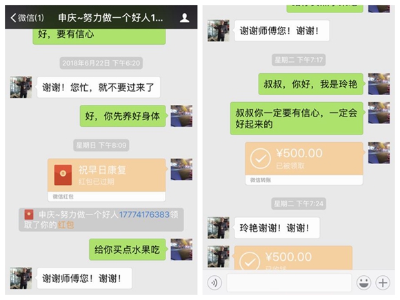 據了解,梅申慶是安徽池州東至縣大渡口人,46歲,目前在麗水一家企業打工。妻子身體也一直不好,近兩年前后動過兩次手術,生病后就一直待在家里休養,陪在他們身邊的還有一個正在上初中的小女兒。周偉教練的女兒知道父親學員的情況后,也通過父親向梅申慶捐助了500元,鼓勵他一定要為了家人養好身體,爭取早日好起來。