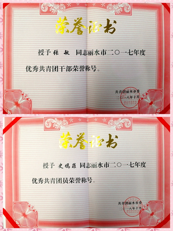近日,為表彰先進,樹立典型,共青團麗水市委表彰了一批先進集體和先進個人,其中,集團公司團委推薦的甌龍(甌翔)團支部書記張敏榮獲“優秀團干”榮譽稱號、集散中心團支部的團員史嫣菲榮獲“優秀團員”榮譽稱號。
