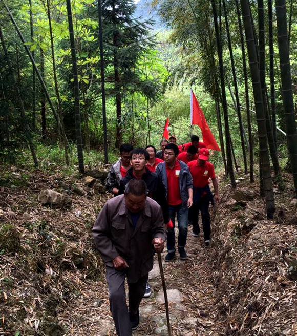 第二個紅色根據地是松陽安岱后,我們一到村里,89歲的陳德利老爺爺就帶著我們去看山上的紀念碑,當年栗裕將軍和劉英烈士部隊駐扎安岱后時,陳爺爺只有五六歲。陳爺爺一路自豪地講著當年紅軍故事,當時村里先進青年陳鳳生如何為了保住安岱后的村莊和全村村民的性命而英勇就義,陳爺爺感慨地說,現在安寧的安岱后,是無數紅軍和村民用生命換來的,其實,如今強大的中國和全國老百姓安定的生活又何嘗不是無數革命先輩用鮮血換來呢!