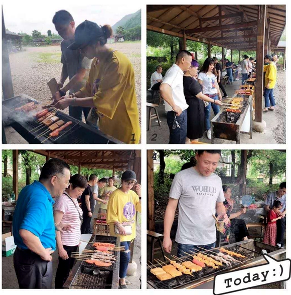 活動現場,大家自己動手燒烤,包餃子,隨著一陣陣孜然的香氣,餃子肉香的散開,讓人胃口大開,大家有說有笑,其樂融融。果然,好天氣,好景就是要跟美食才能相配!