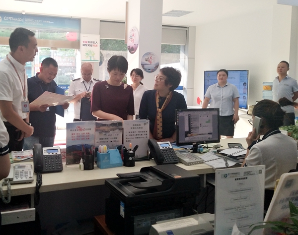 盧彩柳一行實地查看了集散中心門市大廳,聽取了翁偉邦經理關于國慶安保維穩工作的匯報。副市長盧彩柳對集散中心的安全工作表示肯定,并要求在全力做好70周年安保維穩工作的同時,做好國慶期間旅客運輸工作,杜絕一切安全事故的發生。