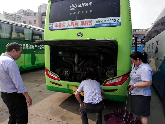 9月30日上午,旅游汽車分公司副經理薛虹帶隊對東西兩站車輛進行全面細致的安全大檢查,不放過任何一個盲區,不留一處死角。對于安全設備不符合規定的、設施設備不齊全的車輛,督促其進行安全檢修和更換,以保證車輛處于良好技術狀態,確保節日期間旅客運輸服務優質、安全、有序。