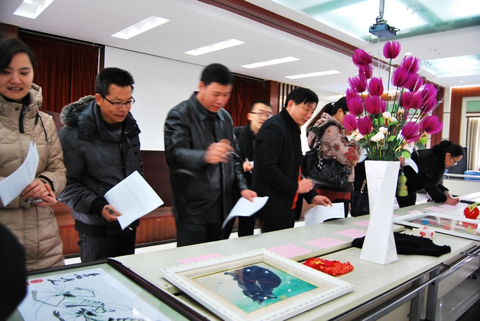 來自集團各單位及集團機關的100多位干部員工參加了競拍,一件件普通的手工作品,起拍底價有幾十元的,也有幾百元的,在場員工抱著獻一份愛心的心情,頻頻競價,最后總底價2300余元的28件全部成交,成交價高出底價近萬元,拍賣所得總金額12220元。