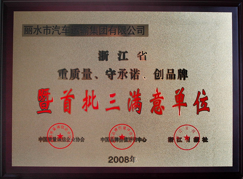2008年浙江省重質量、守承諾、創品牌暨首批三滿意單位