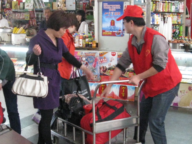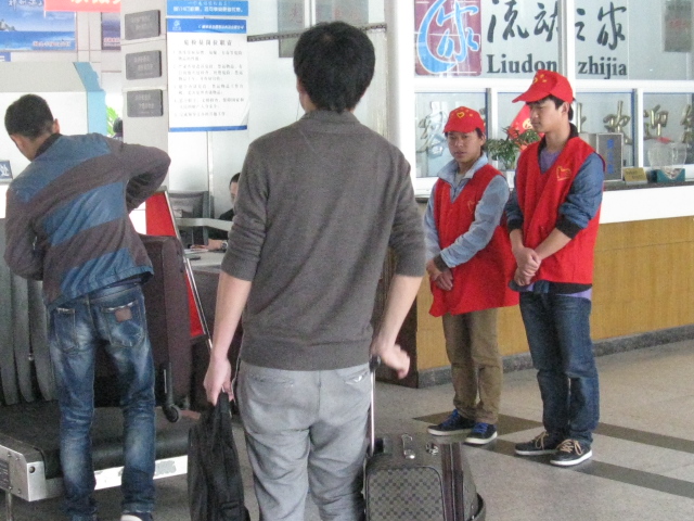 4月29日,來自麗水學院的志愿者們頭戴小紅帽,身穿紅馬甲,活躍在麗水西站售票廳、候車廳等處,熱情的為旅客們指引方向、推送行李、行包安檢、助殘幫困,多樣化的服務給旅客們帶來了許多便利,受到了廣大旅客和車站工作人員的一致好評。
