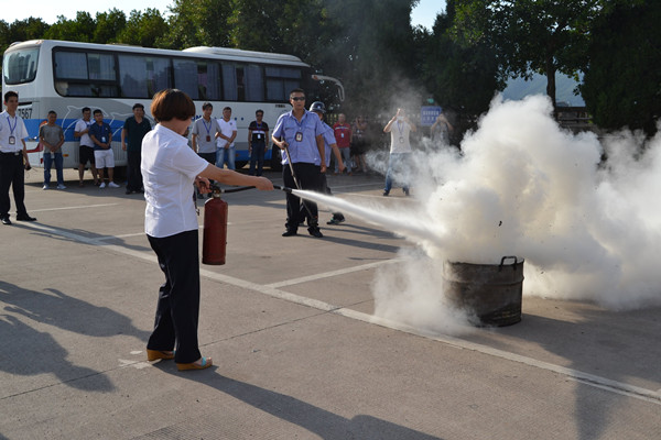 (科目一:消防演練)保衛科專職消防員給大家詳細講解滅火器和消防水帶使用方法、注意事項及撲滅技巧。并就發現火災后如何處置等消防知識進行了深入淺出的普及。隨后,員工們逐一上場使用滅火器撲滅,讓大家親身體會如何正確使用消防器材。