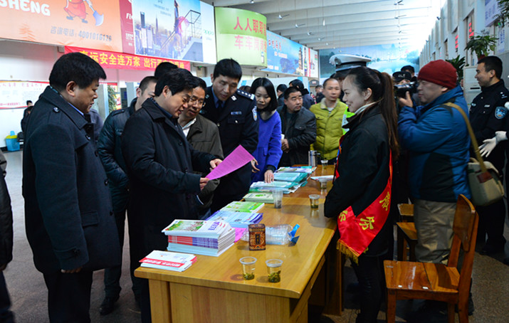 在客運東站,葛學斌向工作人員詳細了解了春運的各項準備情況,查看為旅客準備的春運宣傳資料、免費供應的開水,以及一些便民咨詢服務等。