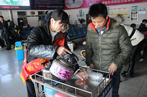 昨天進入到大寒節氣,今天馬上就有一股冷空氣來應景,氣溫有小幅的下降。一大早西站“流動之家”服務班的姐們就準備好一大壺熱氣騰騰的姜茶,免費為候車大廳的旅客送上熱姜茶,幫助他們驅去寒意,溫暖回家的旅程。