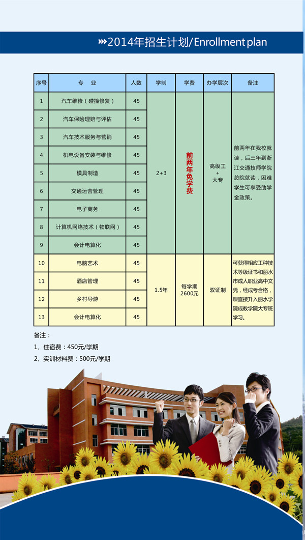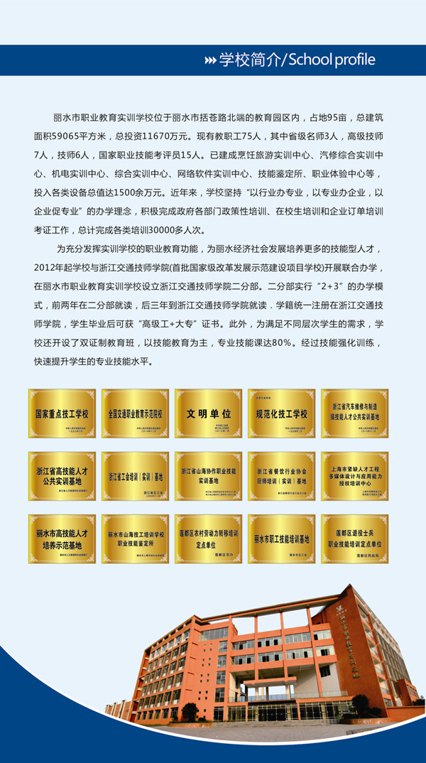 浙江交通技師學院二分部 麗水職業教育實訓學校2014年招生簡章