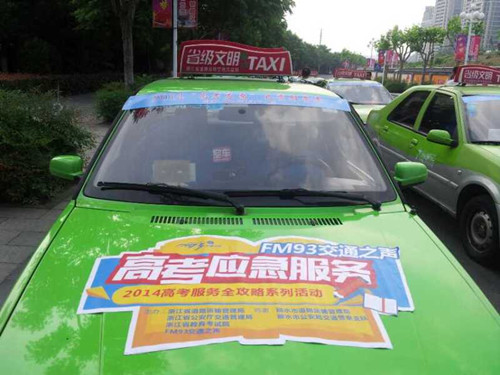 2014年,是我市出租車行業開展服務高考志愿行動的第7年,與往年相比,今年的高考應急服務措施更細致、更專業、更貼心。為了能為12年寒窗苦讀的學生做點貢獻,市區三家出租車公司三支省級文明出租車隊,共60輛“愛心肋考”車投入“服務高考志愿活動”。每輛“志愿助考”出租車的前、后擋風玻璃粘貼統一的助考標識,考生均可憑“準考證”免費乘車到考點。在麗水中學和麗水二中兩大考點將分別安排應急車在開考前1小時至開考后半小時定點為考生服務,其余車輛則分布于市區各個路段提供便捷服務。考慮到路況現狀,為了不耽誤考生“一生中最重要”的考試,準備10輛應急車輛。萬一遇到送考車輛發生拋錨故障,或者有突發事件影響送考的情況,應急車將及時頂上,保證在第一時間內把考生接送至指定考場。另外,我們還設立了服務預約電話,考生可提前撥打麗水市道路運輸管理局服務熱線“96520”或市區三家出租車公司電話,我們將及時安排點對點高考應急服務。