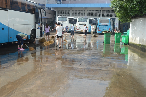 一大早,公司薛和有總經(jīng)理、廖翊堯副總、林周穎副總、呂麗君工會(huì)主席等領(lǐng)導(dǎo)早已在東站片區(qū),檢查指導(dǎo)災(zāi)后工作。