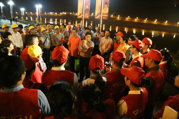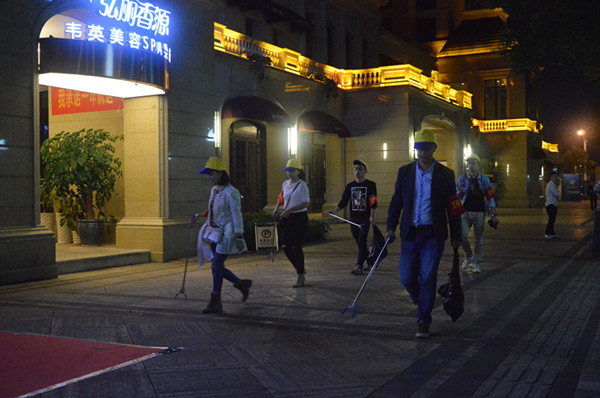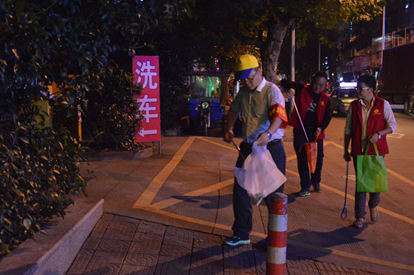 晚上19:30,大家從麗陽門公園出發,兵分兩路,經大洋路、城西路一路向南,最后到達應星樓。一路上,麗汽集團志愿者們拿著垃圾鉗將沿路兩邊的煙頭、可樂罐等垃圾撿拾干凈,并向沿路群眾進行了不隨手亂扔垃圾等文明行為的勸導,以身作則宣傳文明城市創建。