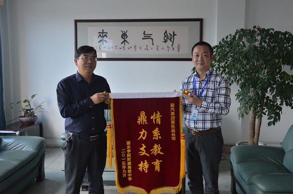 8日早上,麗水學(xué)院附屬高中的陳衛(wèi)華副校長和兩名老師帶著一面表彰旌旗來到客長運出租車公司梁巍經(jīng)理的辦公室,對客長運出租車公司主動幫助學(xué)院附高學(xué)生解決高考接送困難表示由衷的感謝。