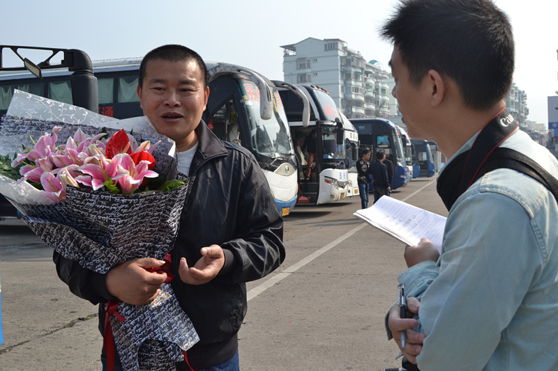 11月4日上午一上班,麗汽集團董事長、黨委書記葉茂和工會主席呂麗君就專程來到客長運分公司,看望慰問章雙林師傅。董事長葉茂親自給章雙林師傅遞上鮮花,贊許這位“最美司機”,稱他是麗汽集團1500多名員工學習的榜樣。
