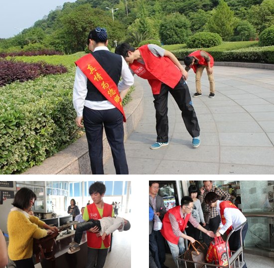 在西站候車大廳內(nèi)因為有這樣一群身穿“紅馬甲”的志愿者變得格外溫馨。他們有的穿梭于人潮中,指引旅客在哪個檢票口檢票;有的為旅客送開水;有的引導(dǎo)旅客安檢、幫忙旅客提行李;有的帶著鉗子、塑料袋清撿站前廣場上的白色垃圾、清鏟地面口香糖;有的在候車室勸導(dǎo)不文明行為,例如吸煙、隨地亂丟垃圾等。在西站工作人員和志愿者的辛勤付出,讓繁忙的車站客流、車流秩序井然.
