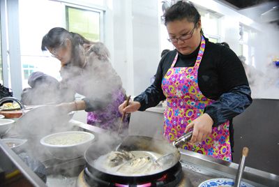 今年的女工廚藝大比拼一共吸引了集團公司各單位和離退委的12支隊伍參加,5人一組,5個女工在組里各司其職,分為洗菜、切菜、烹飪、輔助等崗位。按照規定,每組必須根據組委會提供的原材料,在規定的時間內,制作出14道菜。