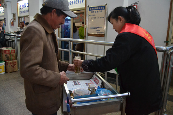 1月27日凌晨,一場不期而至的冷空氣光顧山城麗水,氣溫明顯下降。一大早,東站“流動(dòng)之家”服務(wù)班的工作人員就準(zhǔn)備好熱氣騰騰的茶水,穿梭于候車室免費(fèi)為旅客送上,井然有序的候車室里,彌漫著濃濃的暖意。