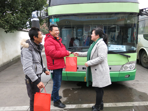 2月4日,春運第一天上午,旅游汽車分公司領導前往汽車客運東站,慰問春運加班的駕駛員,叮囑駕駛員路途中一定注意行車安全,如遇到下雨、下雪、大霧等惡劣天氣時,要按照限速規定嚴格控制車速,避免發生交通事故,搭班駕駛員要互相照應,不要疲勞駕駛。