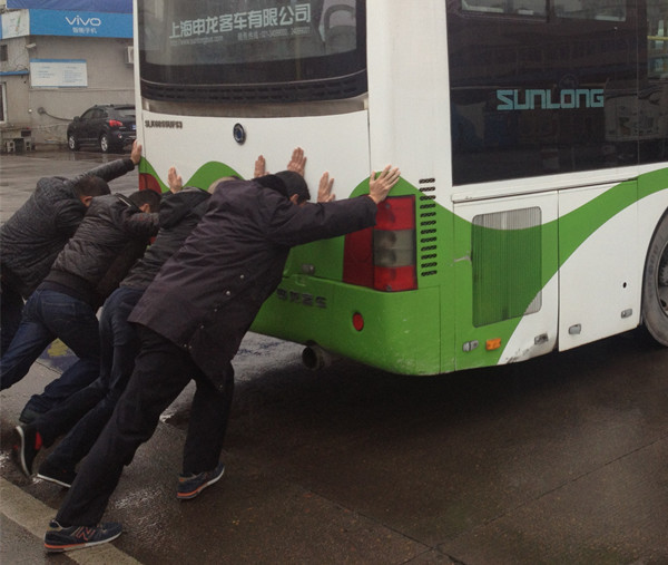 早上6時40分,開207線路的公交司機高師傅來到客運東站站前廣場,和往常一樣,準備出車。插入鑰匙,轉動啟動按鈕,之前的發動機轟鳴聲卻沒聽到,連續轉了幾次,車子還是沒反應,高師傅心里隱隱覺得肯定是出問題了。經過檢查,發現是由于天氣太冷,電瓶電力不足無法啟動。他馬上打電話找來了車隊的兩名同事,一人把方向盤,兩人推車,可車子移動過于緩慢,根本不可能通過人工打火啟動。就這樣,207路的公交車停在了東站站前廣場的中央占著通道,影響了出站的交通。