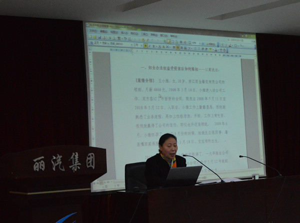 為慶祝“三?八”婦女節,貫徹執行浙工女職〔2015〕1號文件精神,并結合女職工維權活動月的要求,3月12日晚上,麗汽集團舉辦了一場“麗汽集團女職工法律宣傳與權益維護”法律講座,市人民檢察院檢察官楊素青就如何運用法律來維護女職工合法權益給大家進行了深入淺出的介紹。