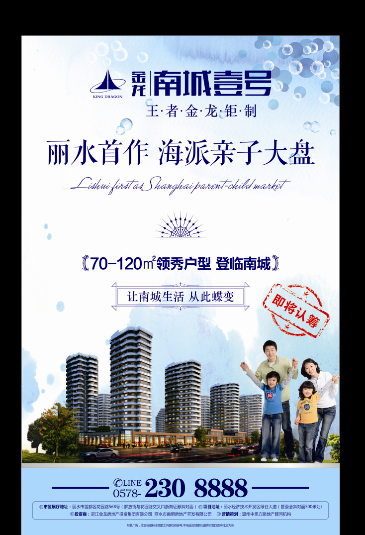 麗水首作海派親子大盤(pán),金龍.南城壹號(hào)即將認(rèn)籌,70-120平方米領(lǐng)袖戶型,配備超200米特色商業(yè)內(nèi)街、近1000米環(huán)形跑道、超800平方米藍(lán)鉆泳池和8大親子主題,讓南城生活從此蝶變。