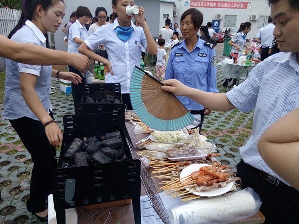 在大家的努力下,炭火終于燃燒起來了,燒烤也正式拉開了帷幕,同事們紛紛上場開始大顯身手,刷油、上烤架、刷調(diào)料,一陣陣香味引的路人紛紛駐足。有的同事技術(shù)高超,烤出來的食物色香味俱全,一出爐就被大家一掃而空,有的同事技術(shù)差了一點,烤出來的食物外焦里生,大家吃著自己親手烤出的各種食品,體驗了一把“自己動手豐衣足食”的樂趣。