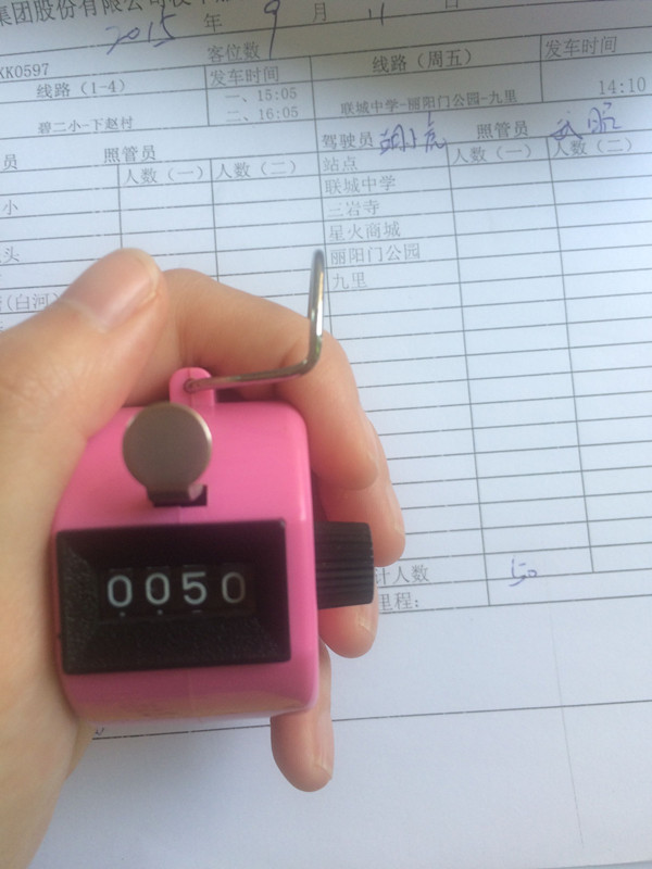 9月7日,新學期第一天,教育局會同安監局、交通局、交警隊等主管單位在碧湖小學組織召開了校車安全管理現場會,校車分公司照管員武昭的一個小計數器讓現場各主管單位的領導和碧湖小學的老師們都露出了滿意的笑容。