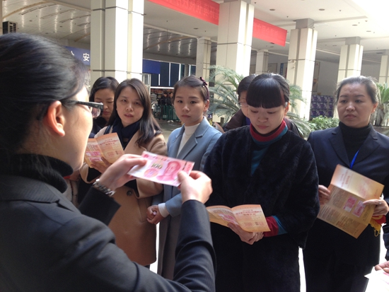 11月26日,西站業務站員工在泰隆銀行工作人員指導下順利開展了新版人民幣識別培訓。