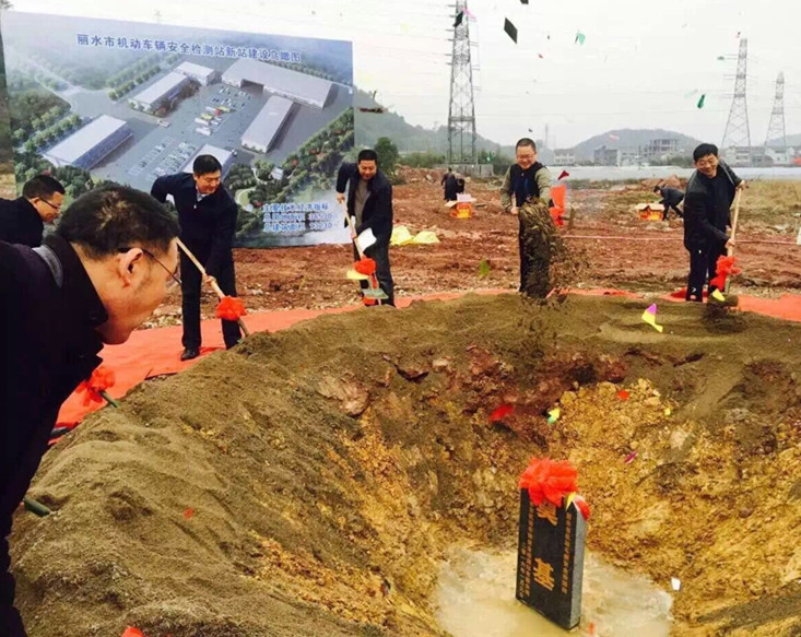 2016年1月9日早上,麗水市機(jī)動(dòng)車輛安全檢測(cè)站有限公司新站建設(shè)奠基儀式隆重舉行。市國(guó)資委副主任魏以永、麗汽集團(tuán)董事長(zhǎng)葉茂、總經(jīng)理薛和有、常務(wù)副總經(jīng)理何赤詮、副總經(jīng)理廖翊堯、工會(huì)主席呂麗君、副總經(jīng)理林周穎、財(cái)務(wù)總監(jiān)沈吉彪、總經(jīng)理助理葉劍飛等領(lǐng)導(dǎo)出席,麗汽集團(tuán)中層干部、檢測(cè)站全體員工和施工單位代表近200人參加了儀式。