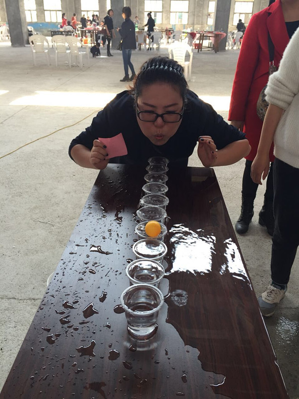 大家一起的說說笑笑的時光總是過的特別快,一會就到了中午時間,吃過午飯就正式開始游園活動。游園有四個項目,第一個吹蠟燭時,我深吸一口氣用力一吹,居然拿了10分。一個好的開頭給了我很大信心,沒想到第二個吹乒乓球的游戲卻把我難住了。十個杯子排成一排,由于我個子比較小,排在最后幾個杯子離我實在太遠了。這時裁判員告訴我一個訣竅,“不用要很大的力氣吹”,要先把杯子里的水都加滿,再對準乒乓球的底端吹,先輕后重。在裁判員的指導下,我又成功的拿了個10分。也許是前面兩游戲給我帶來好運,后面的夾乒乓球、穿越火線兩個游戲也取得了滿分的成績。