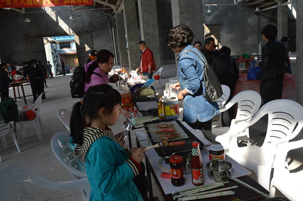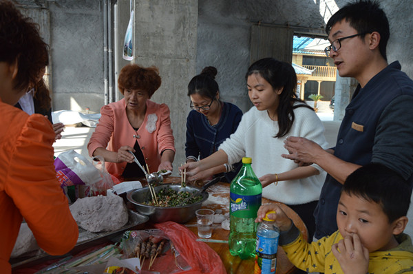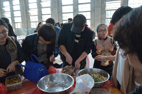 這邊包餃子的問題正討論的激烈,那邊熱氣騰騰的豬頭也出鍋了。“呀,這么大的豬頭,小時(shí)候過年的感覺”。“對啊,對啊,這種氣氛,這種味道,太有紀(jì)念意義了”。“來來來,我拍張照片,微信朋友圈曬一曬”。黃色餃子、綠色餃子、紅色餃子、紫色餃子相繼的出鍋了,燒烤的食品也相繼出爐,大家互相品評,因?yàn)槎际亲约簞?dòng)手參與,一切都變成了美食。