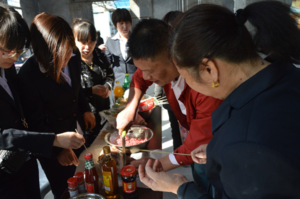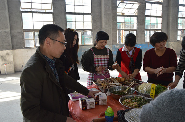 這次活動(dòng)提倡女工人人動(dòng)手,共同參與“煮”婦活動(dòng),包五彩餃子。早上9點(diǎn)不到,場地內(nèi)已異常熱鬧,按預(yù)定的分組形式,“煮”婦們齊動(dòng)手,和面、穿烤串、包餃子,很快顏色多樣、形狀各異的餃子也紛紛的在大家眼前呈現(xiàn),“你綠色的好看”、“你的餃子做的圓嘟嘟的真可愛”、“你教我怎么搟皮吧”、“這個(gè)餃子大的”…… 你到我組看一看,我到你組瞅一瞅,大家互相探討包餃子的技術(shù),互相嬉鬧,歡笑聲此起彼伏。