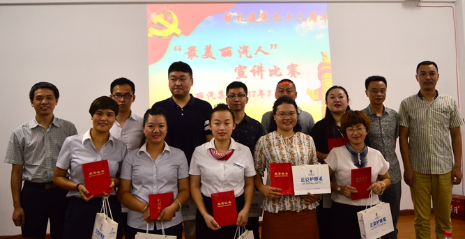 為了深化“最美麗水人”主題實踐活動,深入挖掘麗汽黨員員工在實施企業轉型升級、創業創新發展等重點工作中敢于攻堅破難、敢于擔當實干的先進事跡和先進人物,進一步弘揚麗汽“最美”精神,向黨的十九大獻禮,7月25日晚,麗汽集團黨委、工會、團委聯合組織開展了“最美麗汽人”主題宣講比賽。來自麗汽集團及下屬單位的16名選手參加角逐。麗汽集團黨委委員、工會主席、團委書記等擔任評委。