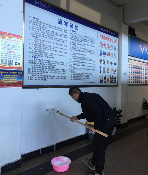 春節的腳步越來越近,為了提升站場的整體形象。1月13日下午亮點,東站黨員志愿服務隊的隊員們在支部書記江小華的帶領下對候車廳、過道、辦公室走廊、樓梯口等墻壁進行粉刷。