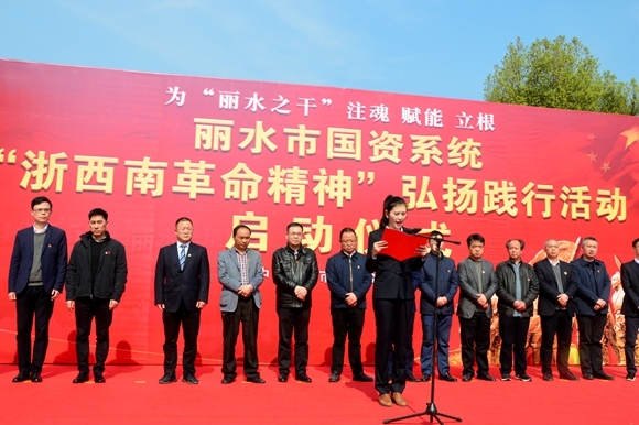 在浙西南革命根據地紀念館前,所有與會人員面對黨旗,由市國資委黨委委員、副主任高天河帶領大家重溫入黨誓詞。革命戰爭年代,周恩來、劉英、粟裕等老一輩革命先驅為了民族的獨立和人民的幸福,將鮮紅的熱血拋灑在浙西南大地上,締造了偉大的“浙西南革命精神”。啟動儀式上,集團公司雷冰帆作為職工代表在大會發言,她講到,作為職工代表要在弘揚“浙西南革命精神”的征程上,在創建浙江( 麗水)綠色綜合發展改革創新區、打造詩畫浙江大花園最美核心區主戰場中當先鋒、作表率。