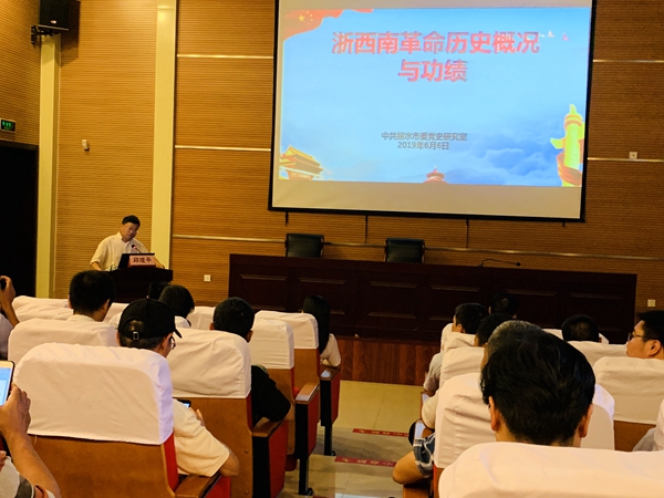 黨課由中共麗水市委黨史研究室的邱理平老師授課,他從唐公憲到遂昌創建中共組織開始,到第一個浙西南黨支部遂昌黨支部的成立,浙西南的革命部隊逐漸壯大,再到土地革命,在麗水的這片土地上,擁有了黨、政、軍、群團四大力量,可謂掀起了局部革命的小高潮,但還是迎來國民黨圍剿,麻植、蔡鴻猷、季步高等革命先驅相繼遇害,浙西南革命事業受挫。星星之火可以燎原,經過不懈努力,遂昌縣工農革命軍成立,是中國共產黨在浙西南建立的第一支革命武裝。革命的力量不斷壯大,浙西南作為大后方,為紅軍的戰略大轉移,起到了非常重要的作用。